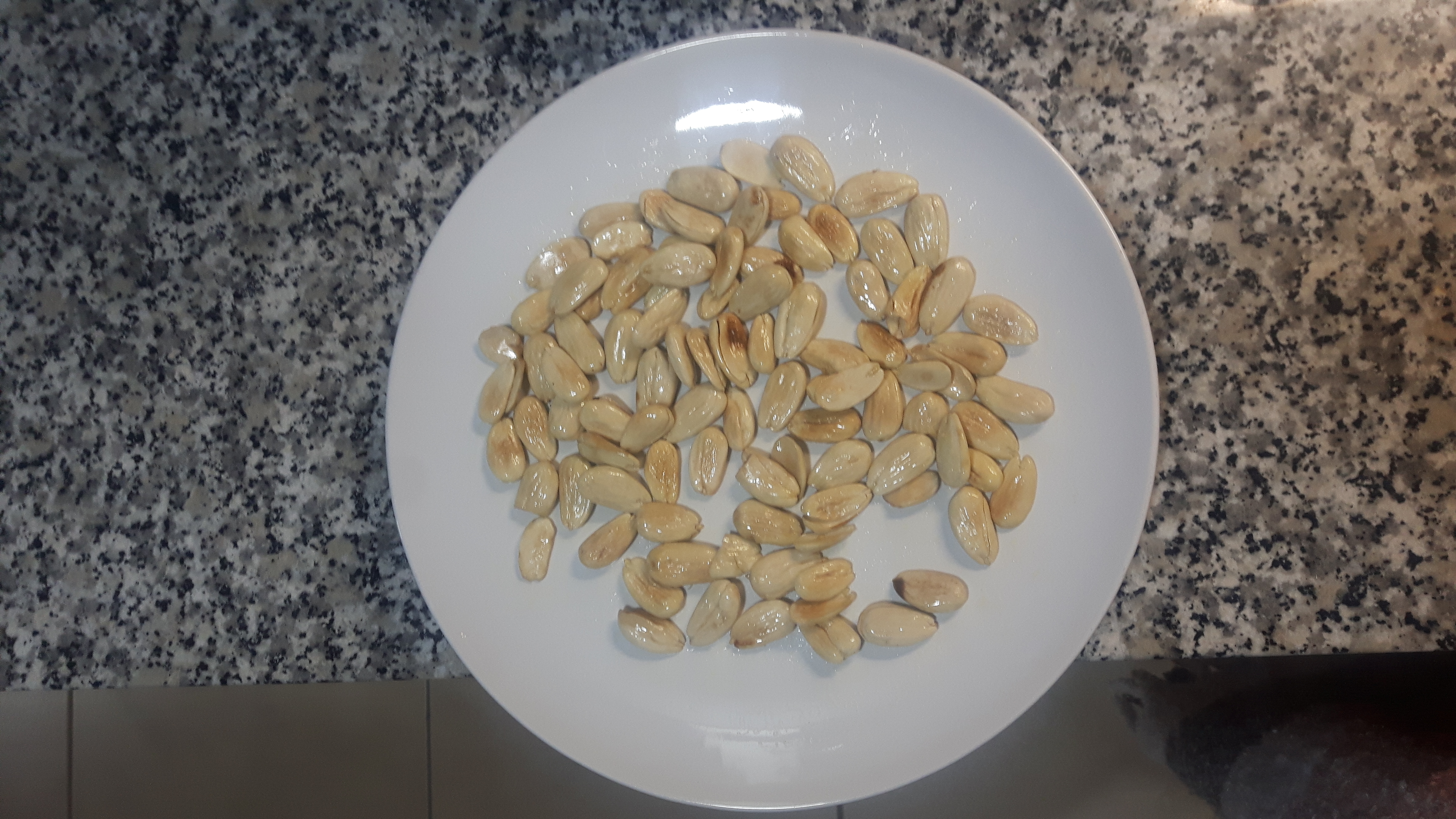 Que me han enseñado? Pues, querían hacer pollo con almendras y como indica la receta necesitábamos 40 gr. de almendras tostadas sin sal. El cliente solo las tenia crudas sin pelar, pues introdujo en una taza las almendras con agua, en el microondas, las pusimos dentro 1 min. y medio, al sacarlas estaban a punto, para pelarlas, aunque con cuidado, que queman, las pelamos de una a una, colocándolas en un plato para secar, luego, le añades sal o lo que gustes, y otra vez al microondas. De minuto en minuto, para que cojan color. Cuando están a tú gusto, listas. Para añadir a nuestra maravillosa receta de pollo con almendras.