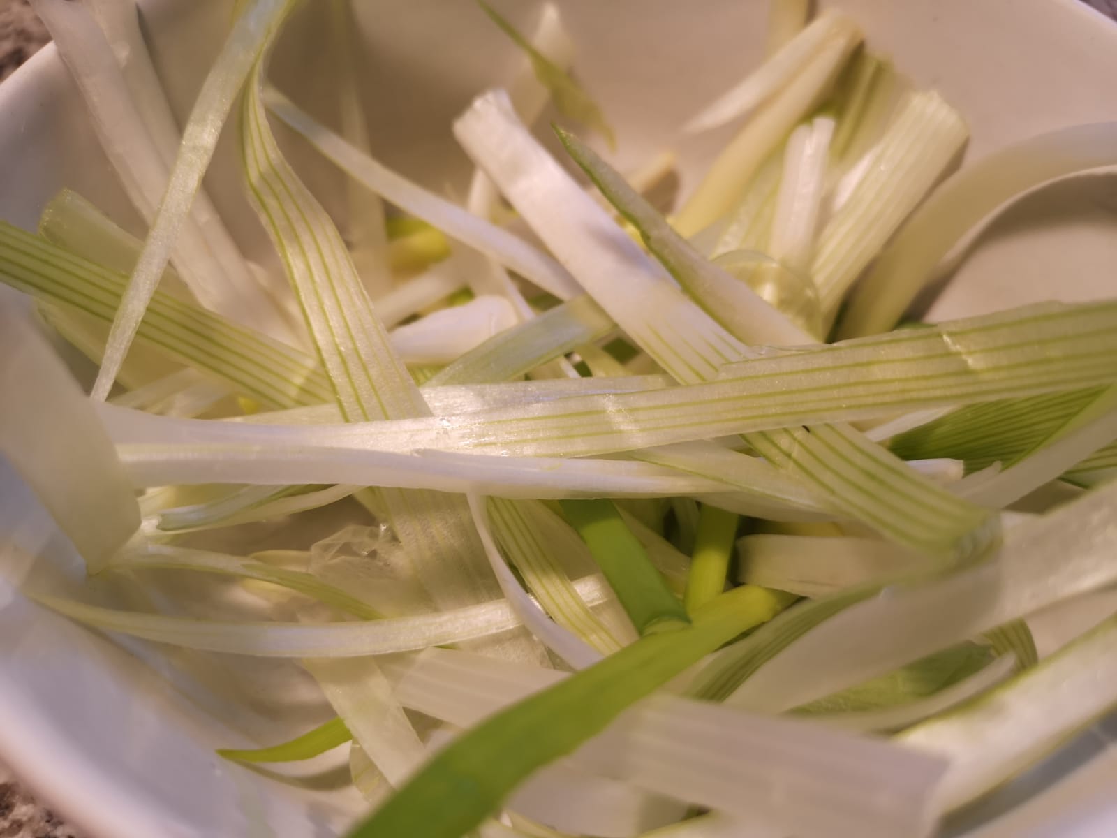 - 50 g de cebolleta en juliana fina (y el tallo verde en aros para decorar)