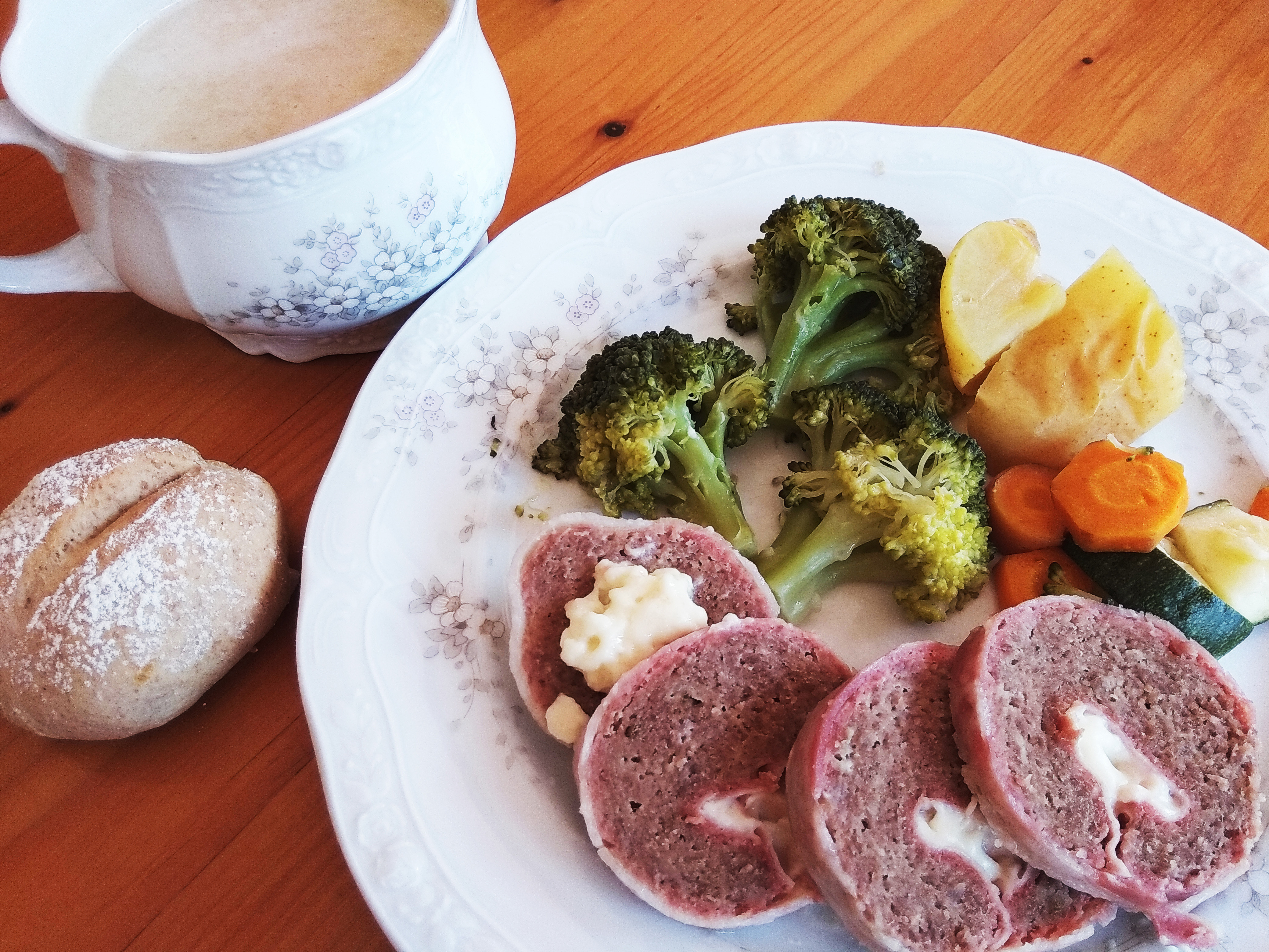 VAROMA: ROLLO DE CARNE Y QUESO CON VERDURAS Y SALSA DE CHAMPIÑONES