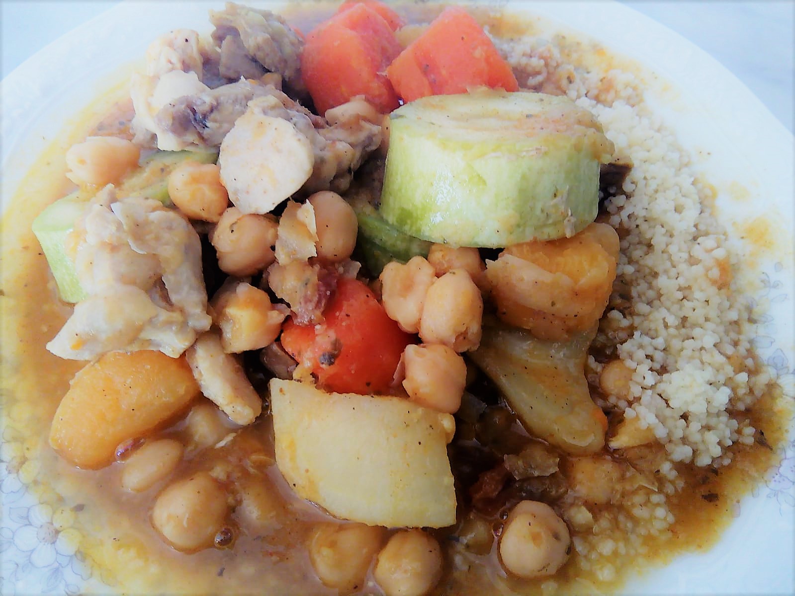 CUSCÚS FÁCIL CON POLLO, CORDERO Y SALSICHAS