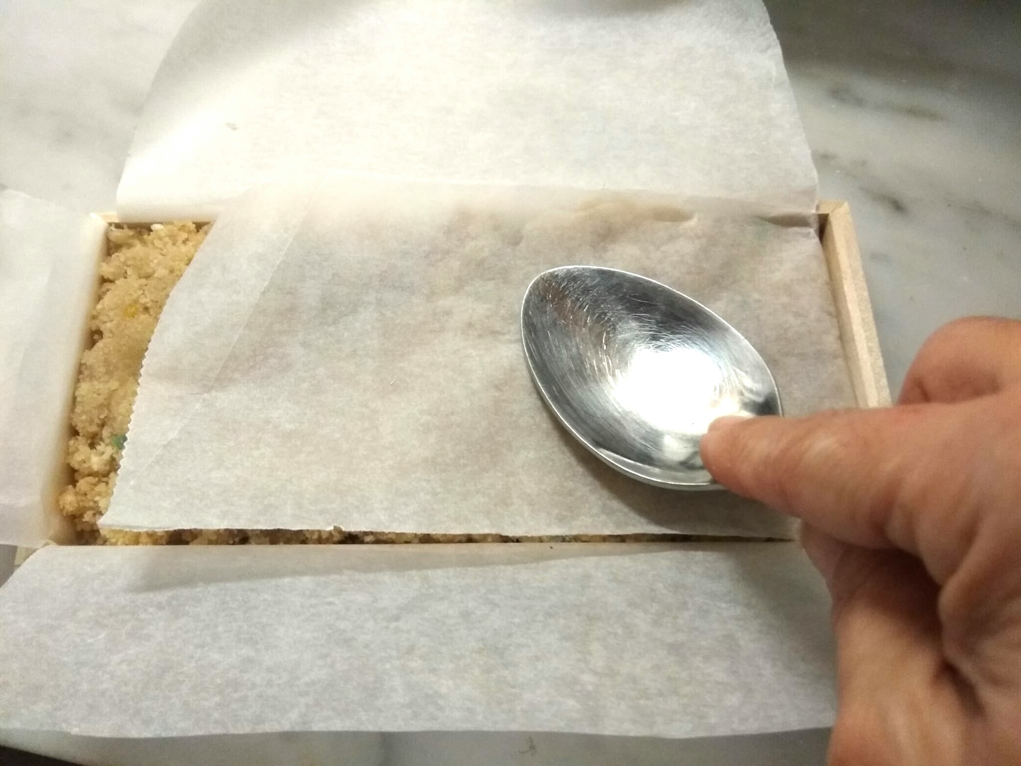 - Presionar bien con la mano, o con el reverso de una cucharaara que nos quede bien liso: