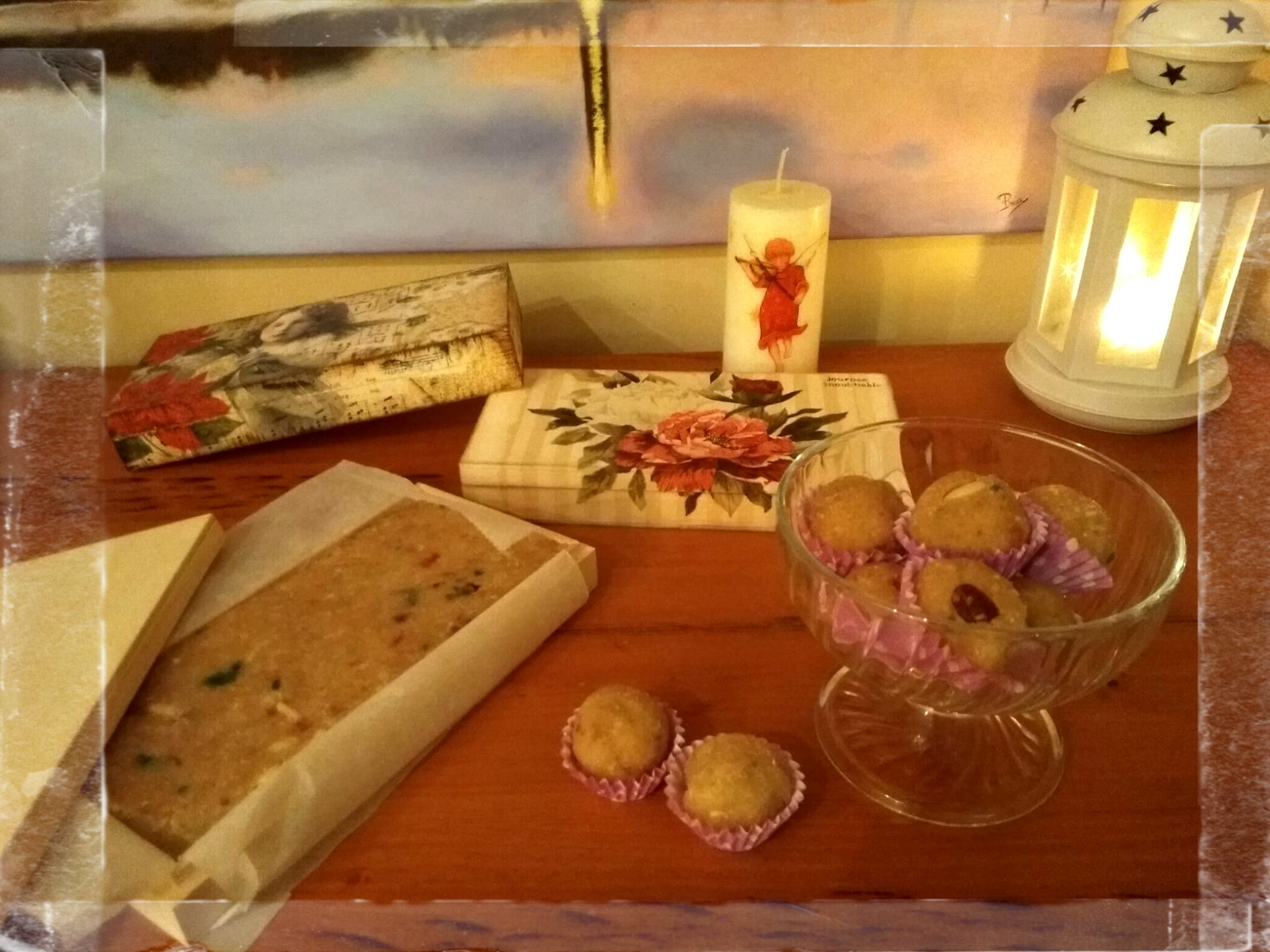 No se solían utilizar moldes, sino que se vertía la mezcla en un plato o fuente y se le daba forma con las manos presionando para compactarlo. Podemos usar cajas de turrón decoradas por nosotros mismos y tendremos un bonito detalle para regalar. O formamos bolitas y las colocamos en cápsulas de papel. Colocadas después en una bombonera para obsequiar a nuestros invitados...Todo hace Navidad!!!