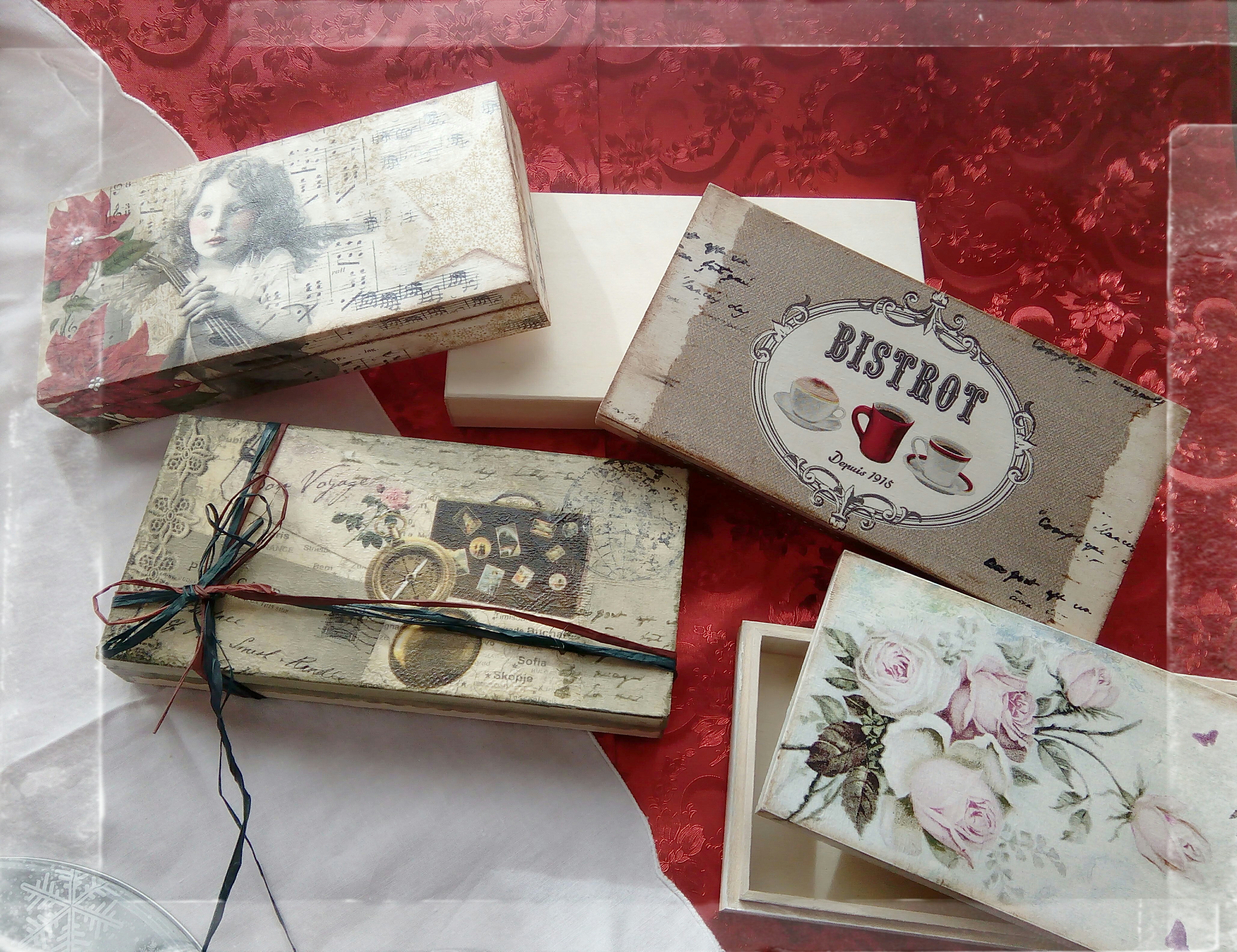 Como, que no tenéis cajas donde darles forma y guardarlos????Quizás os gustaría conseguir una caja de madera y aprender a personalizarla con decoupage y otras técnicas. Incluyendo un turrón también hecho por ti puede ser un regalo único y maravilloso. Y ya sabéis, los regalos hechos con el corazón son los mejores...