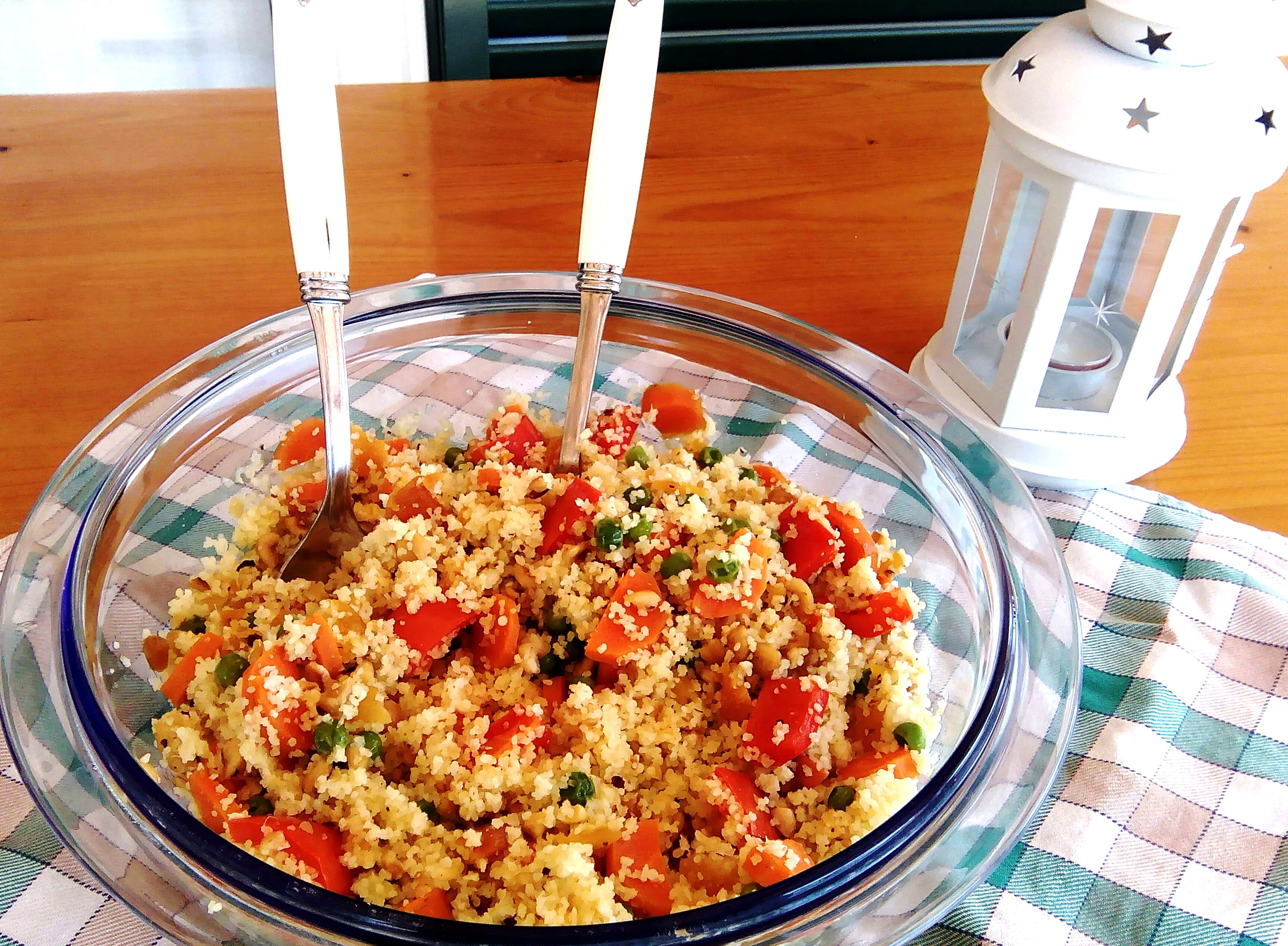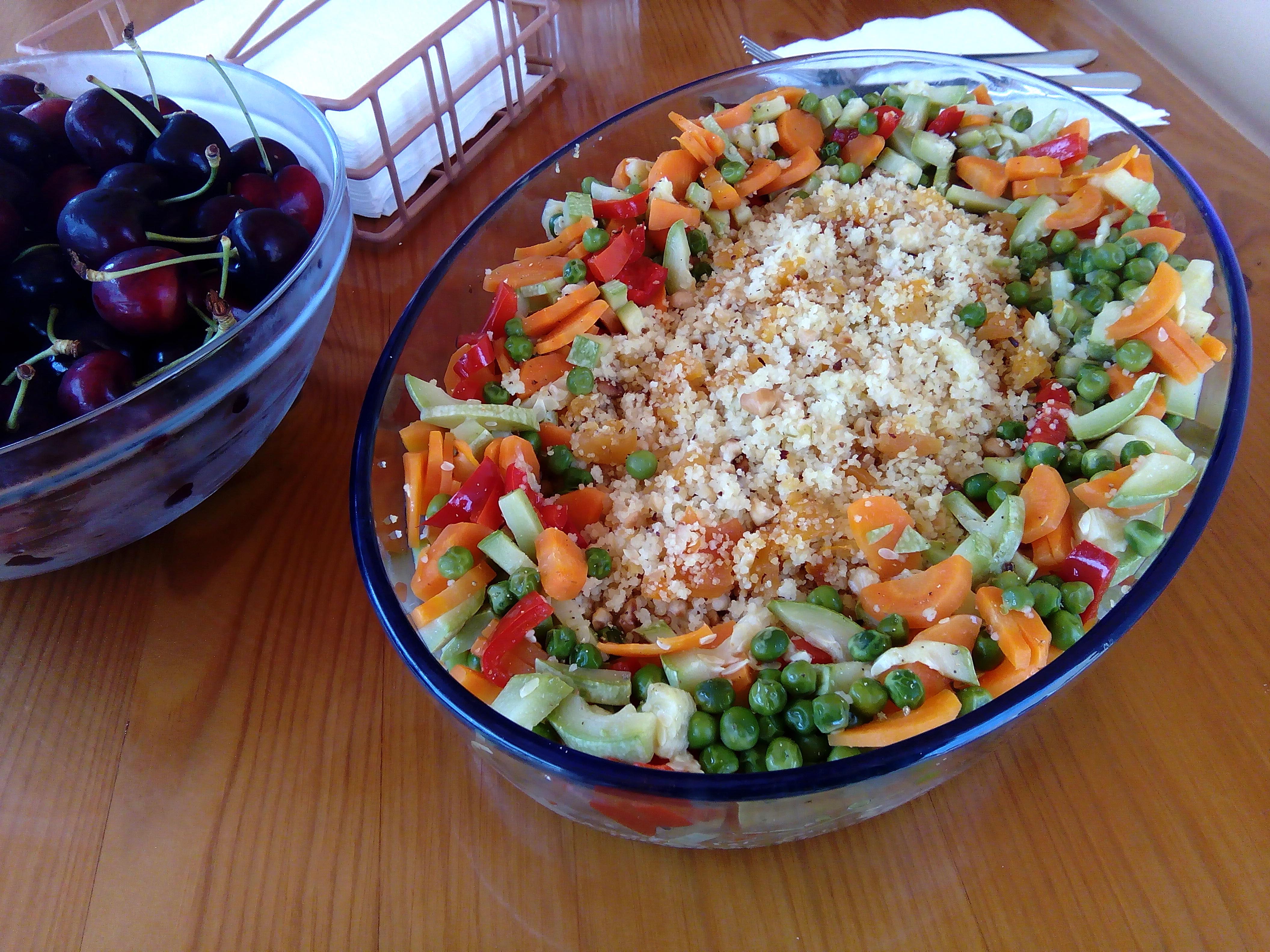 CUSCÚS DE VERANO , CON ALBARICOQUES, AVELLANAS Y QUESO FETA CON VERDURAS