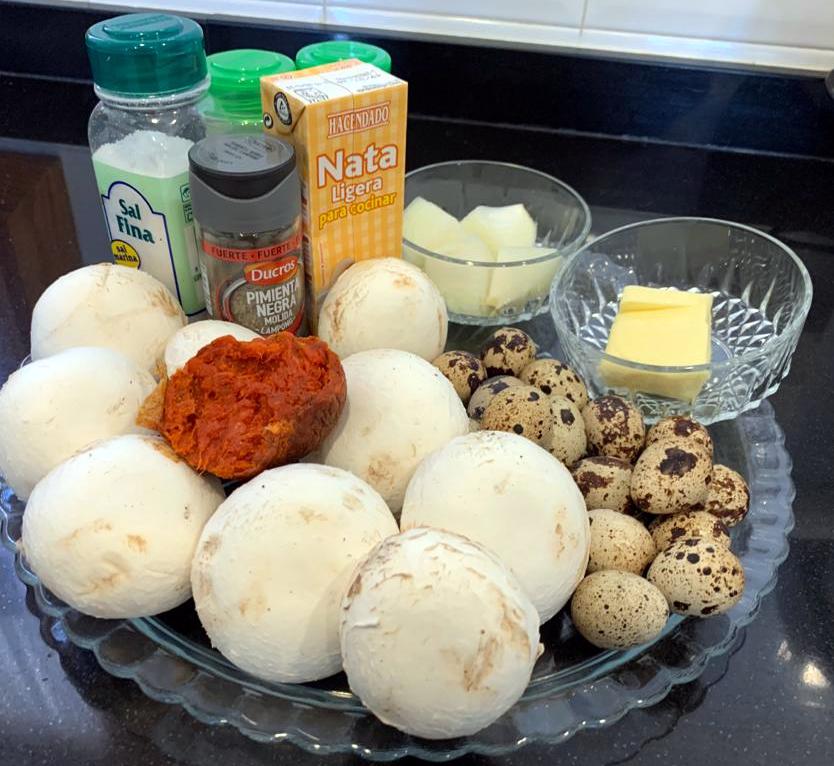 HUEVOS DE CODORNIZ EN CHAMPIÑÓN SOBRE SALSA DUXELLES
