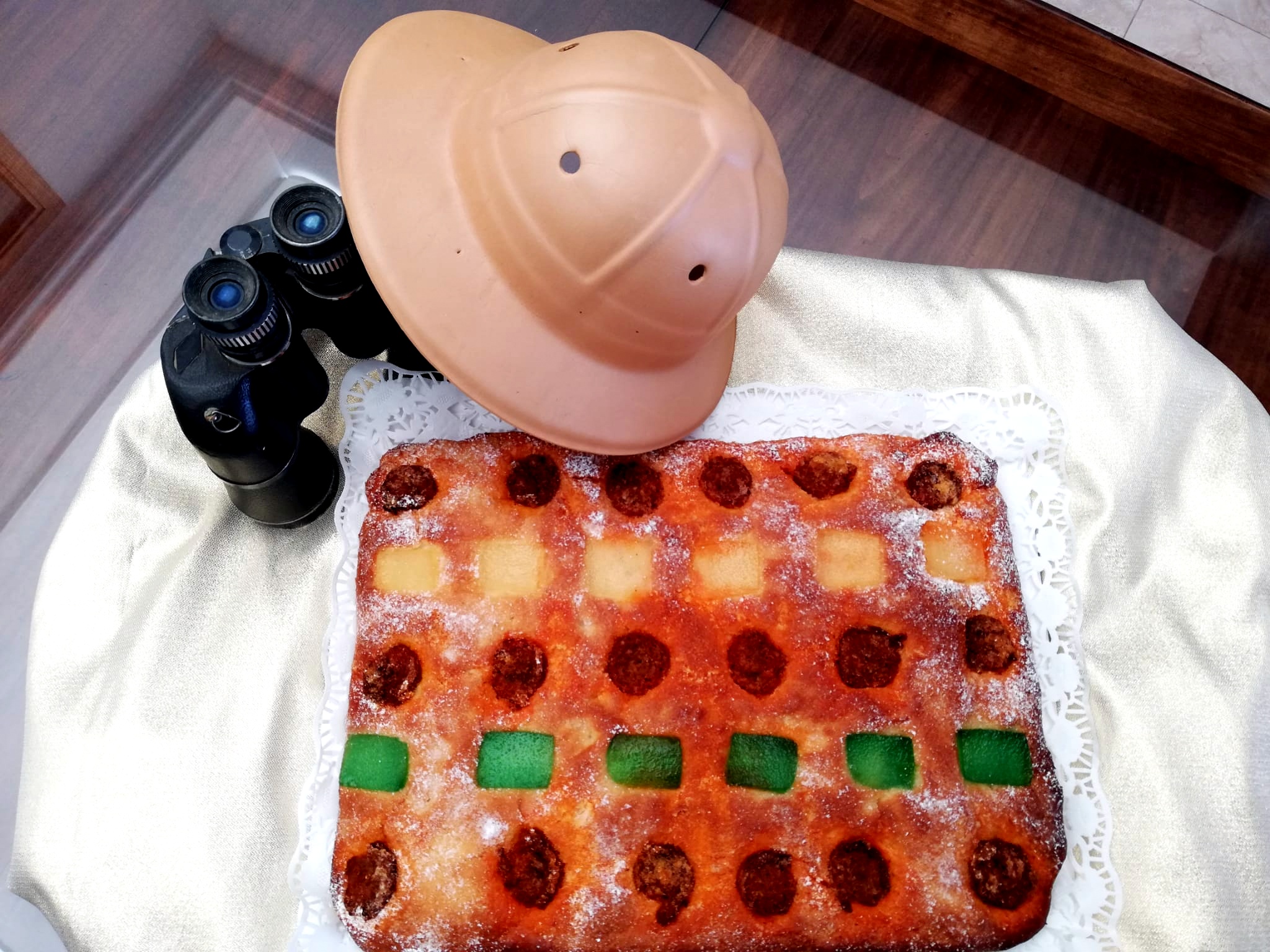 8. Hornee durante 30 minutos, hasta que esté dorada. Deje enfriar y espolvoree la superficie con azúcar glas.