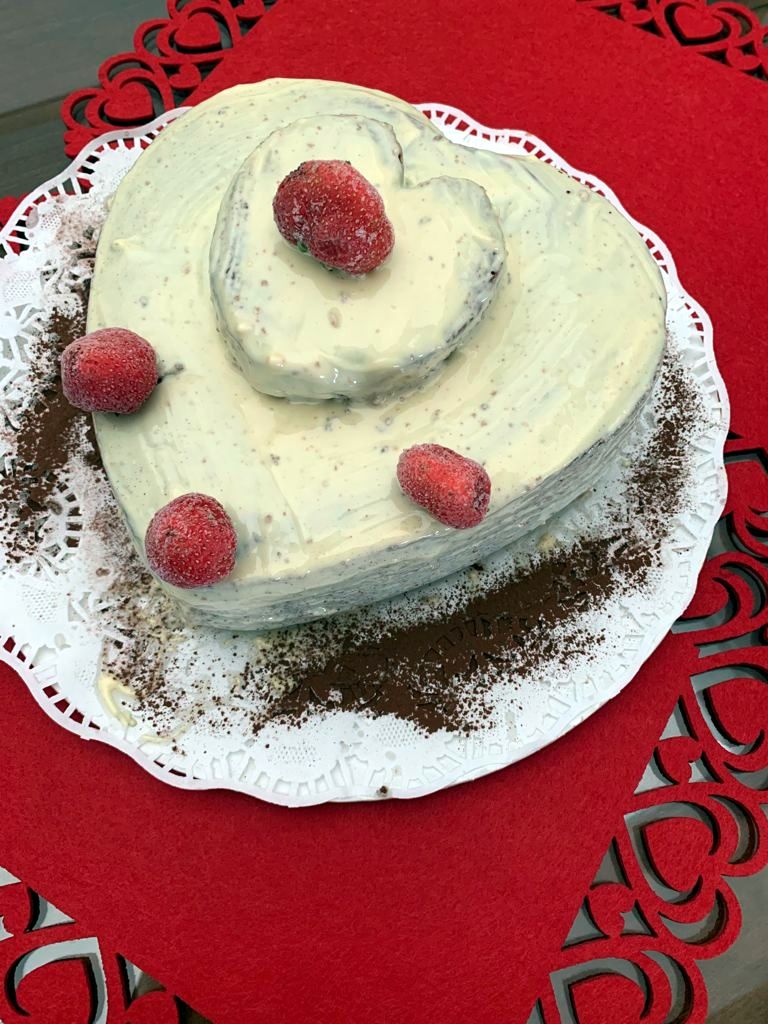 * Además, al ser una fecha especial, he utilizado el molde en forma de corazón y lo he forrado de chocolate blanco para fundir. Una vez puesta la cobertura, puede meterse en la nevera para que coja consistencia.