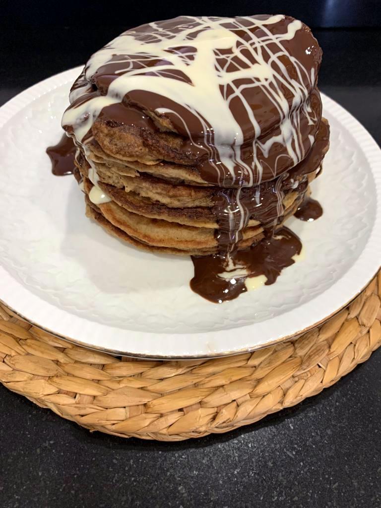 4. Decore con pepitas de chocolate negro y jarabe de arce. Sirva inmediatamente.
