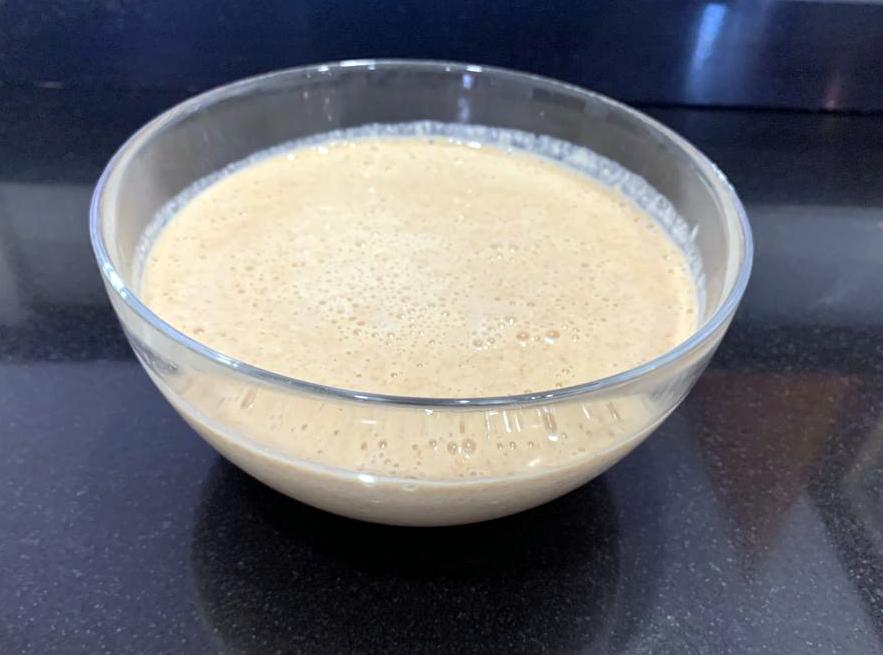 2. Añada las claras de huevo, la avena, la levadura, el café y la leche de almendras y mezcle 30 seg/vel 6
