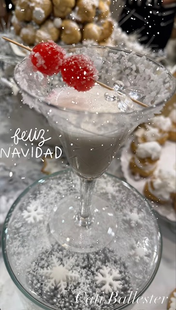 ¿ y qué mejor manera de abrazar el espiritú navideño que con una bebida de color blanco que nos transportará a un paraiso invernal ?, donde las montañas estan cubiertas de nieve y el aroma de brandy , vainilla , mezclado con el licor de cereza llenará el aire . Y los hielos le darán este toque refrescante