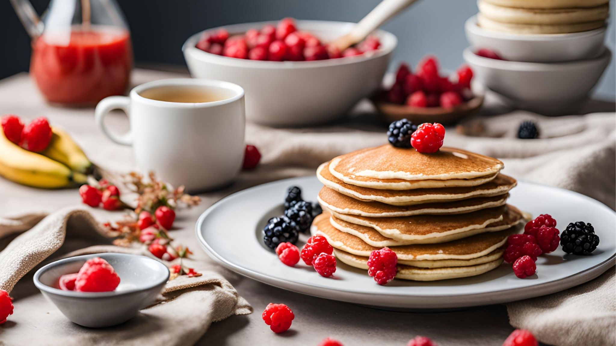 Son un desayuno completísimo y fantástico , yo las he acompañado de unos frutos rojos , pero quién quiera les puede añadir unas nueces troceadas … , frutas diferentes … o mermeladas caseras Sin nada de azúcar .