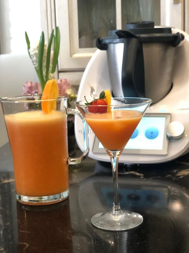 En cambio con nuestro thermomix tenemos la ventaja de poder poner la fruta tal cual como nos la comeríamos , la manzana bien limpia con su piel , la naranja le quitaríamos la piel y las semillas y así con todos los ingredientes que vayamos a utilizar , y conseguiremos un zumo con todos sus nutrientes , vitaminas y lo más importante , sin conservantes ni aditivos , totalmente natural y en tan solo 1 minuto . No se puede pedir más !