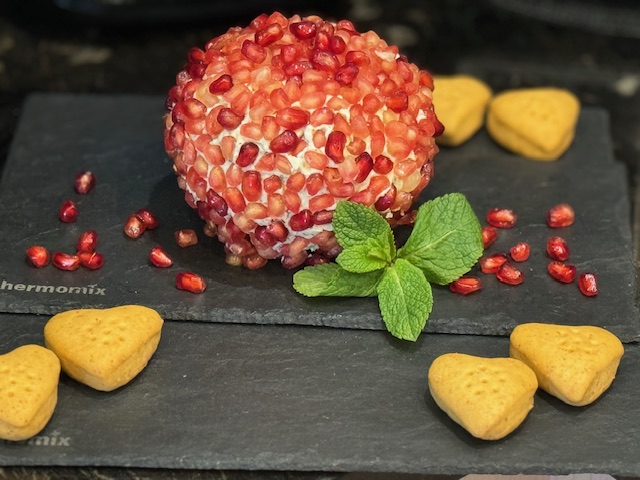 Si hay un aperitivo de queso que me enamore es sin lugar a dudas esta bola de queso envuelta en esta fruta tan deliciosa . Tanto por su color , como por su agradable combinación , este toque dulce y salado es una maravilla .
