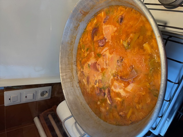 ESCUDELLA DE SA POBLA . GUISO CON CALABAZA, ALUBIAS PINTAS Y CARNE