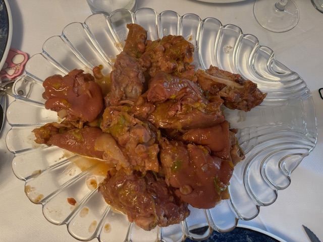 Una costumbre después de haber comido el primer plato de Escudella , es sacar a la mesa una fuente con la carne de cerdo que se come como de segundo plato , la carne esta deliciosa , súper flojita , un manjar de 10 .