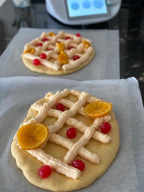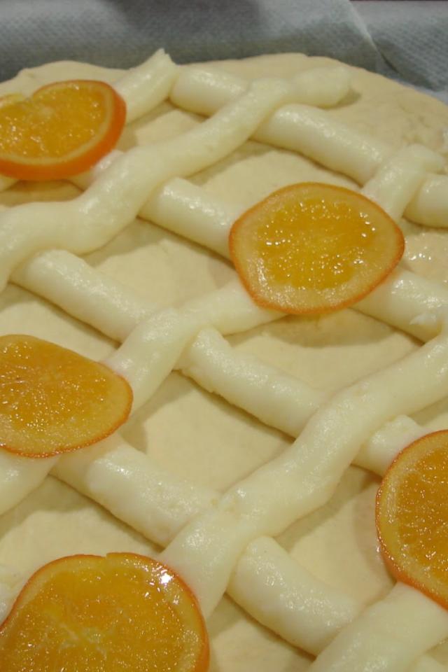 Si lo que queremos es solamente un enrejillado de crema pastelera , lo haremos con la ayuda de una manga pastelera y antes de hornear