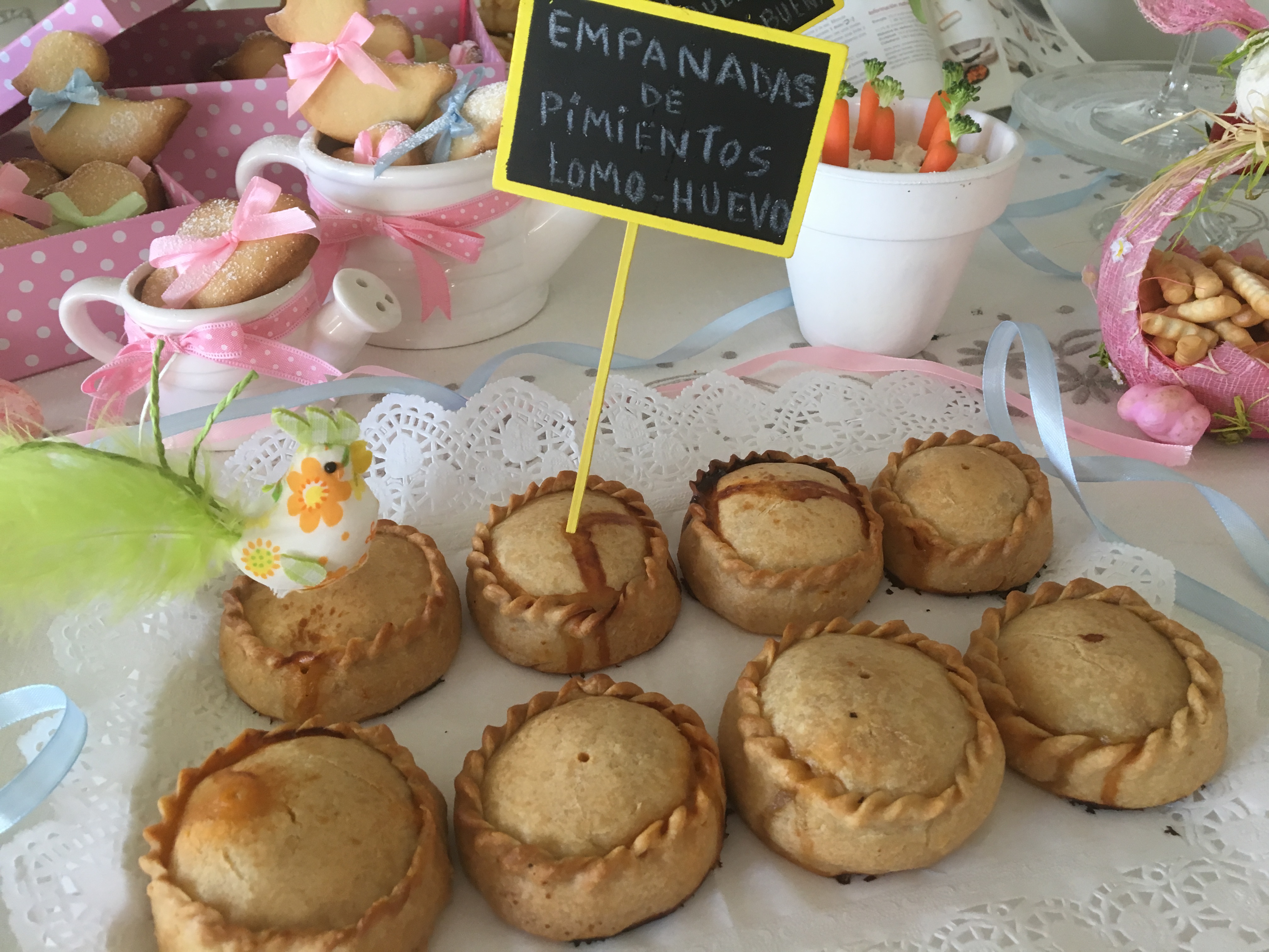 - Hacemos las empanadas ( si nunca has hecho una empanada tienes una receta paso a paso aquí ). Ponemos en el interior una capa de pimientos, luego los trocitos de lomo, otra de pimientos y los trocitos de huevo duro. Finalmente, cerramos las empanadas.