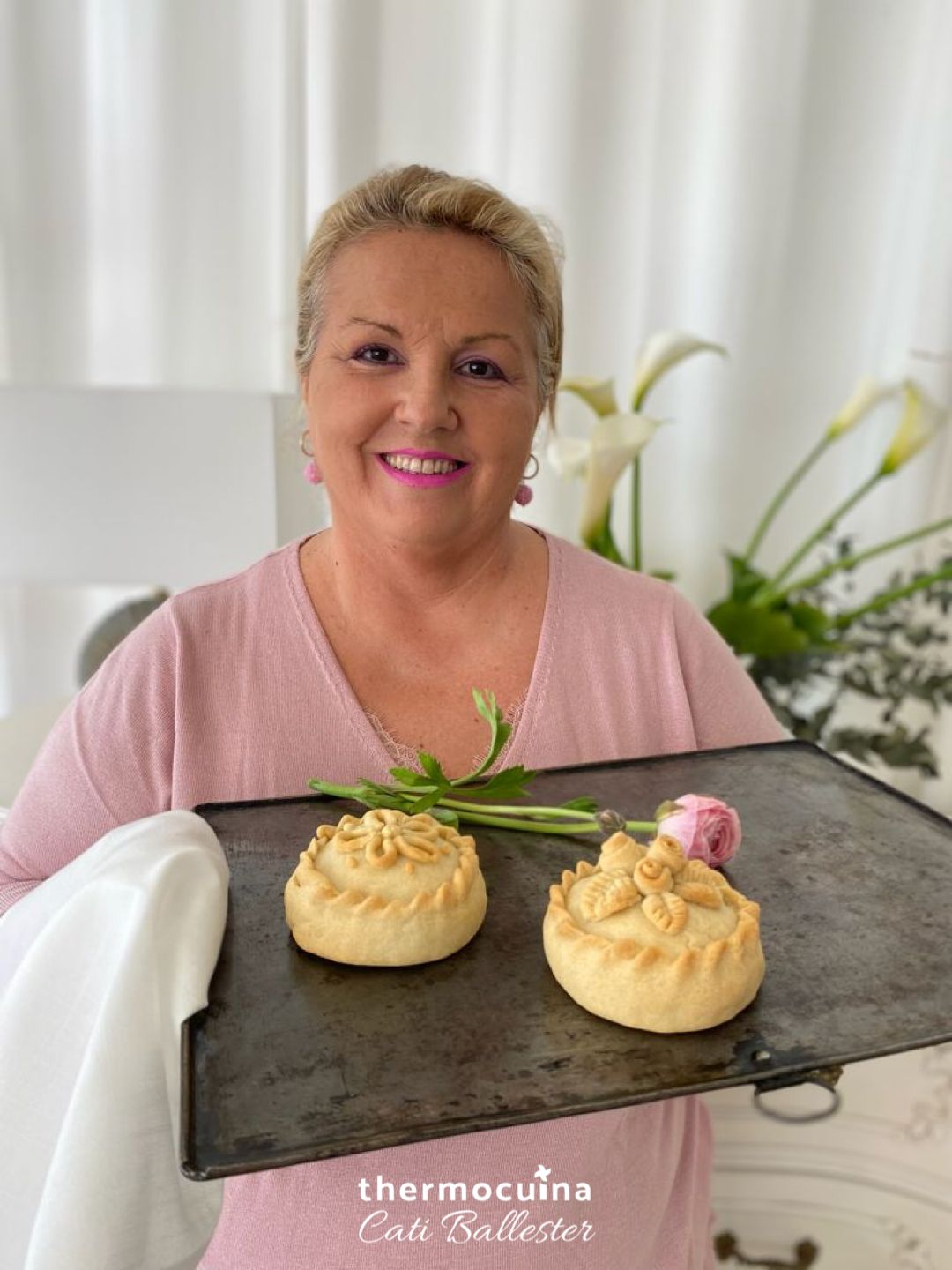 La receta todos ya la tenéis en casa ; la pasta tradicional que hacéis siempre y aquí lo más importante es rellenar la panada de carne de cordero salpimentadla , un poco de panceta y la confitura de cabello de ángel . https://thermomix-mallorca.es/catalina-ballester-gost/preview/preview?