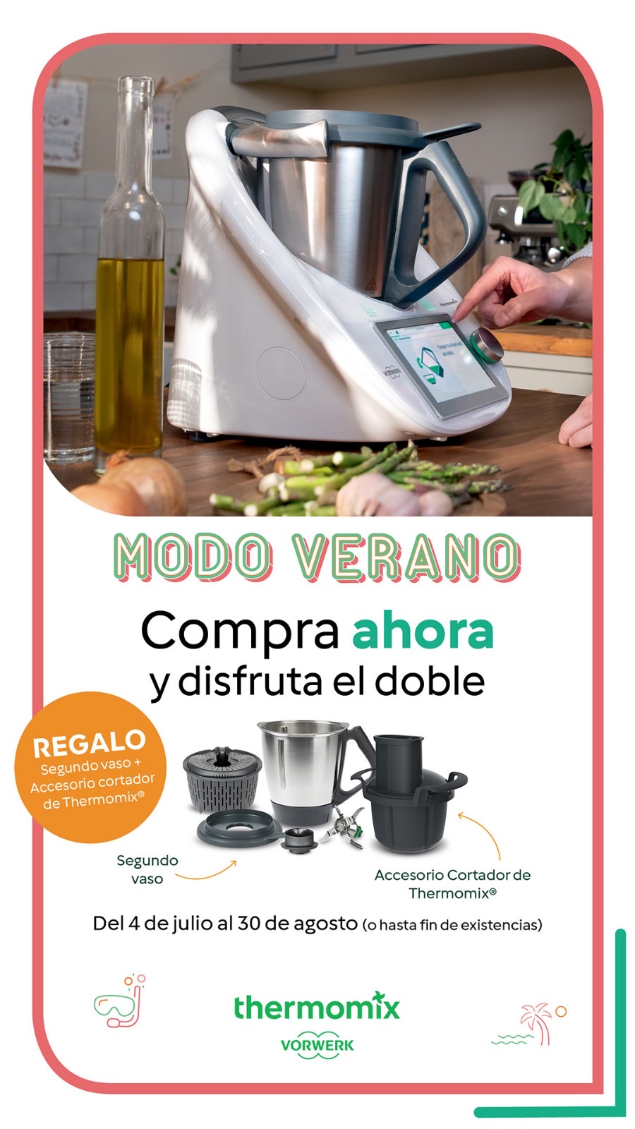 Además del Thermomix TM6 COMPLETO , de REGALO tenemos un SEGUNDO VASO , valorado en 250€ , y luego también el Nuevo CORTADOR para que puedas cortar, láminar , rallar todo tipo de verduras y más .