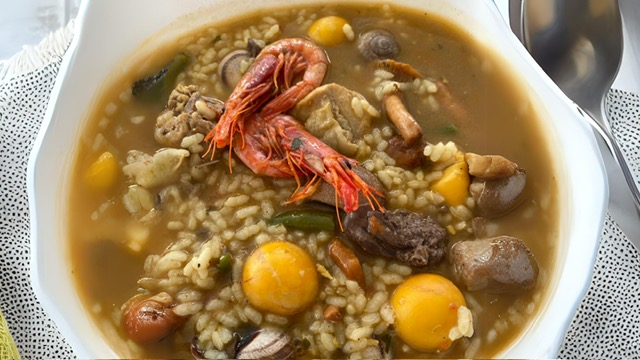Este arroz es una delícia que cautiva a los paladares más exigentes , gracias a su mezcla de carnes , verduras y especias.