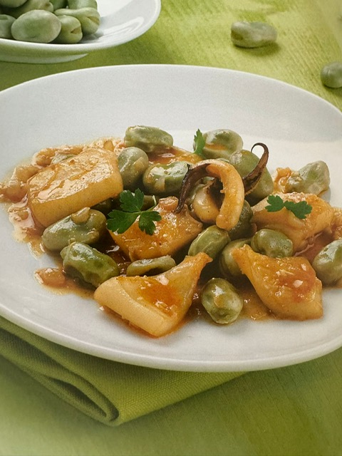 CALAMARES CON HABAS . CUINAT DE CALAMARINS AMB FAVES .