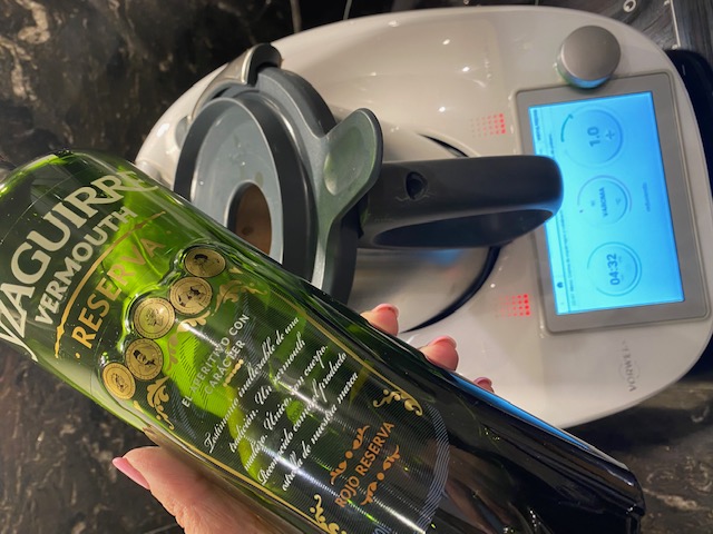 Aquí poniendo un buen vermouth , me gusta poner buenos ingredientes a los platos , así seguro que saldrán buenísimos !