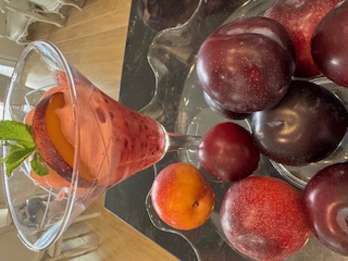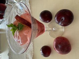 mi propuesta es un helado de dos texturas; un refrescante sorbete de ciruelas y hierbabuena y una mousse helada de que tendremos lista en pocos minutos. ¿apetece verdad?