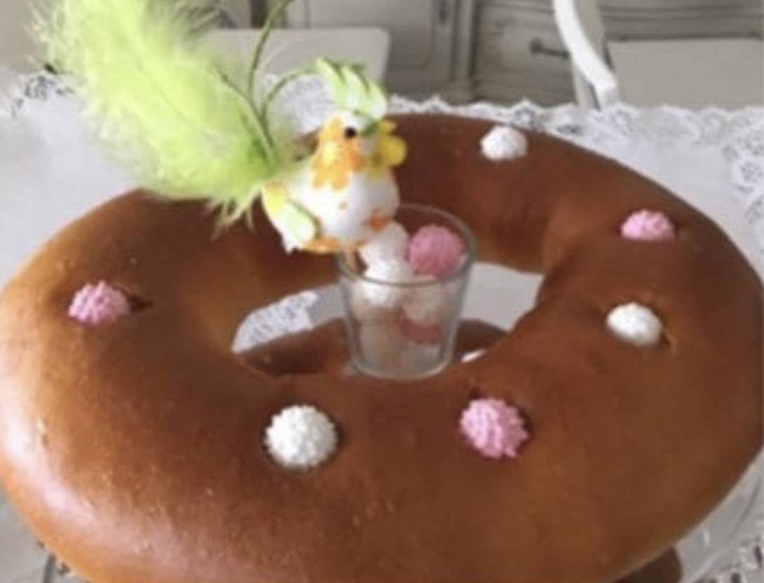 El Domingo de Ramos cuando era pequeña se tenia la constumbre de que la madrina o el padrino regalaba a su ahijado el ROLLO de Pascua , un dulce esponjoso con los típicos confits , así como les llamamos en mallorca a las peladillas que suelen dar a los niños los cafrades en las procesiones del jueves y viernes santo .