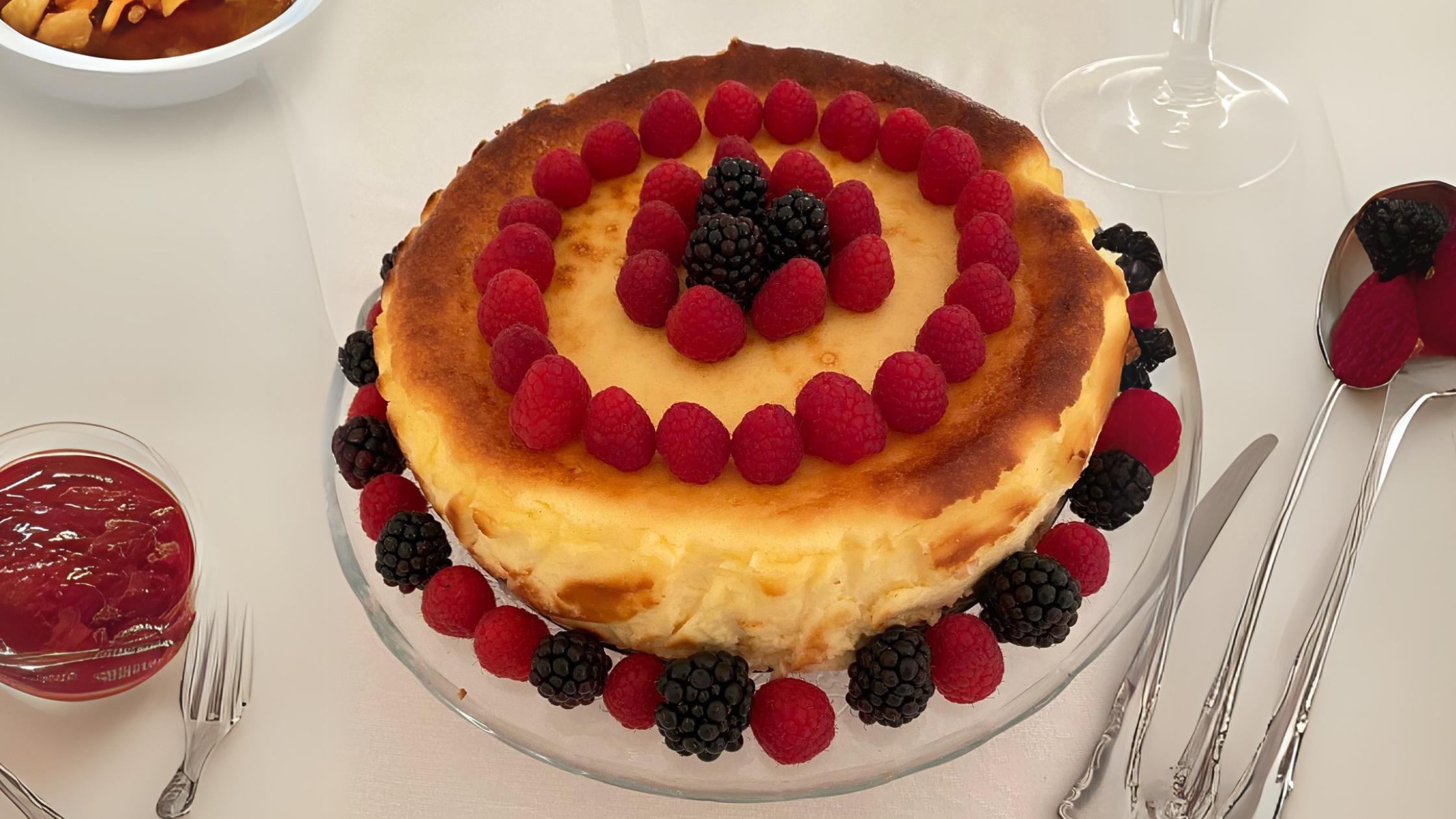 Lo cierto es que cuando un dulce esta tán rico , poco acompañamiento necesita . No obstante yo la he acompañado de unos frutos rojos frescos que le combinan muy bién . Es ideal para Postre de una comida especial o para Comer en cualquier momento del día .