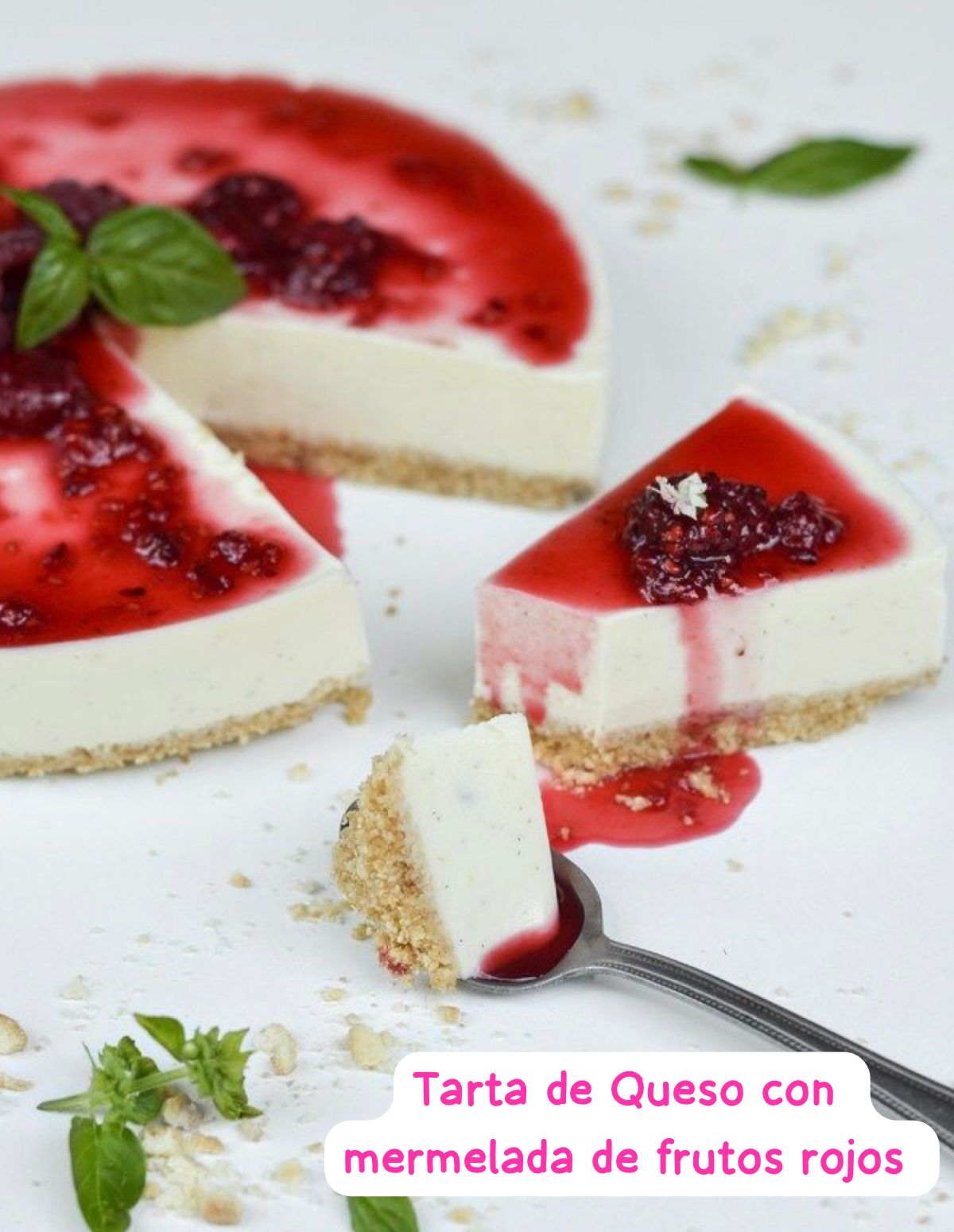 TARTA DE QUESO SIN HORNO CON MERMELADA DE FRESAS Y FRAMBUESAS