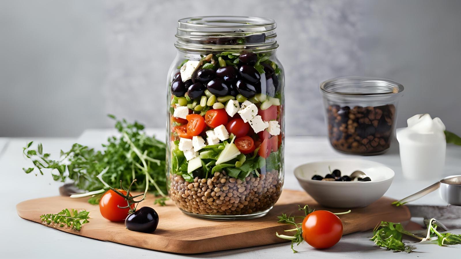 ENSALADA EN TARRO DE CRISTAL con LENTEJAS de VERANO
