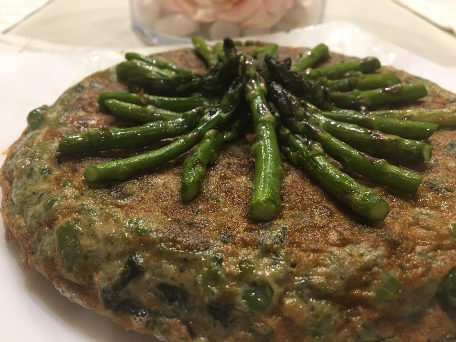 ▪️Precaliente una sartén con el aceite de escurrir y vierta el contenido del vaso. Reparta bien, deje cuajar por un lado y, con la ayuda de un plato, dele la vuelta para cuajar la tortilla por el otro lado. Retire a un plato, decore con las puntas reservadas y sirva.