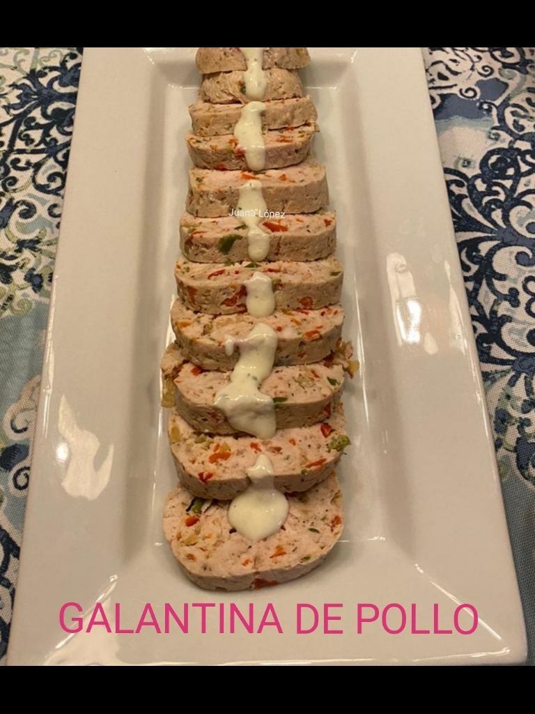 GALANTINA DE POLLO, CON SALSA DE YOGUR Y ENELDO.