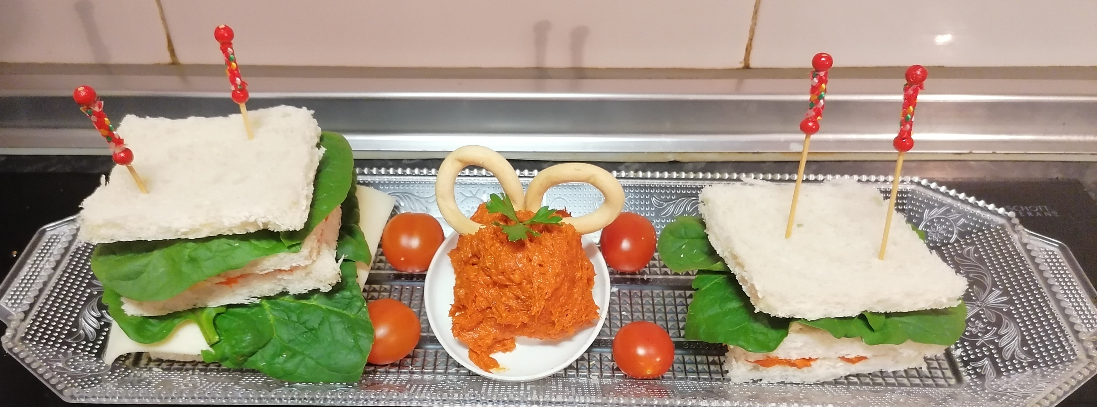 SANDWICHES CON SOBRASADA, MIEL, ESPINACAS Y QUESO
