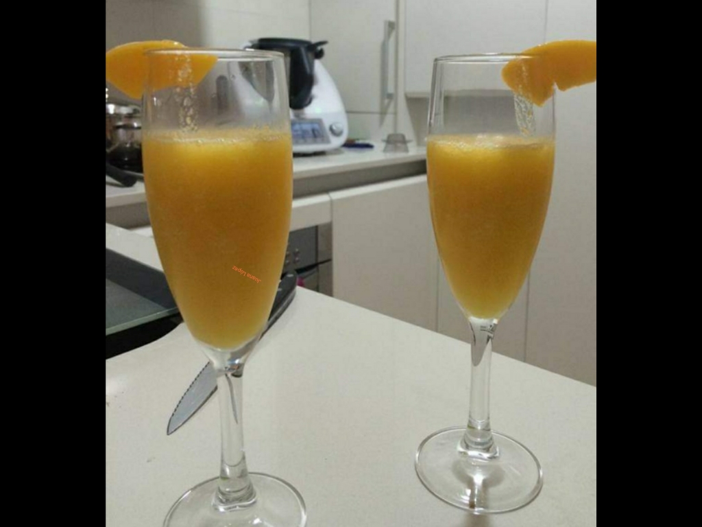 Sorbete de cava o champán con melocotón.Fácil, rápido y sorprendente.