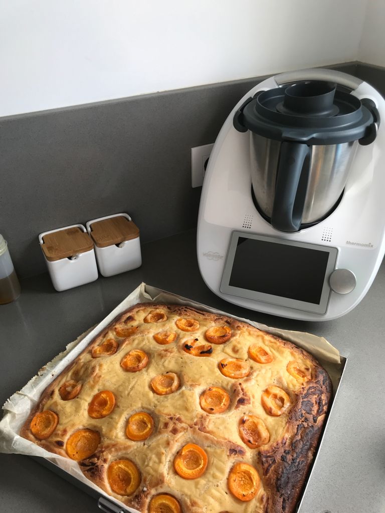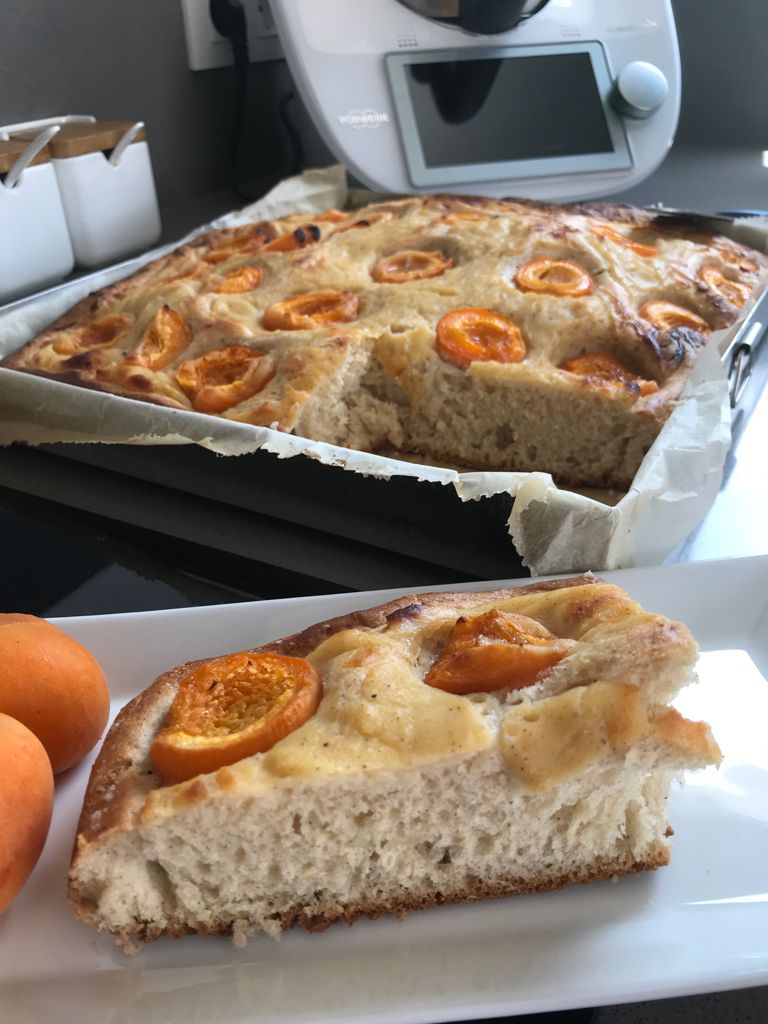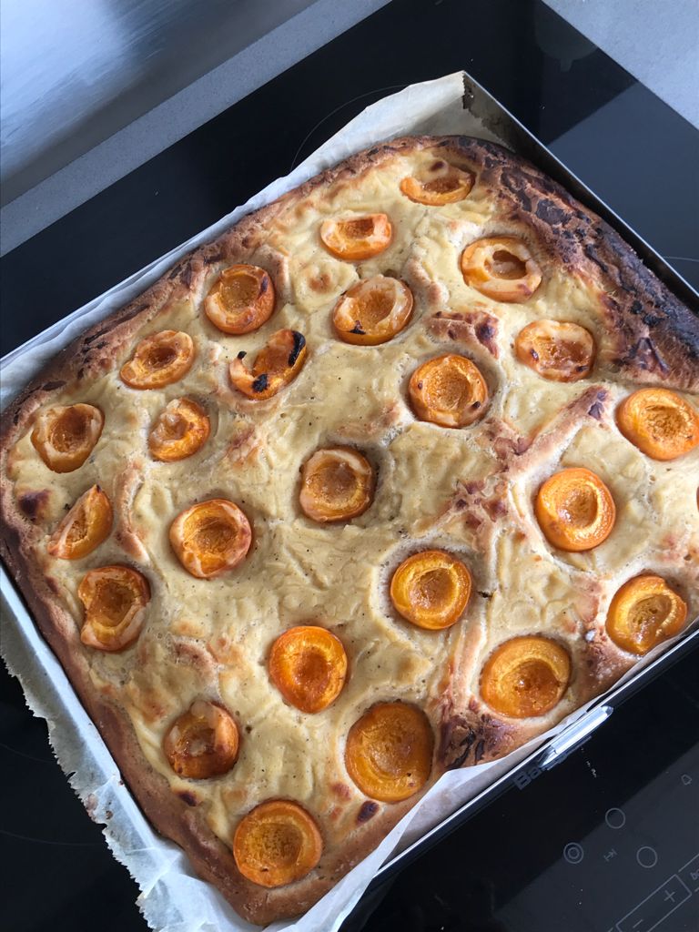 Hoy he hecho esta coca de crema y albaricoque y ha quedado increiblemente rica. Os recomiendo que la probeis y vereis que esponjosa queda. La receta original le ponen cerezas ?, yo como tenía muchos albaricoques le he cambiado la fruta pero se puede hacer con la fruta que te guste más. Os dejo el link de la receta Coca de crema con albaricoqies