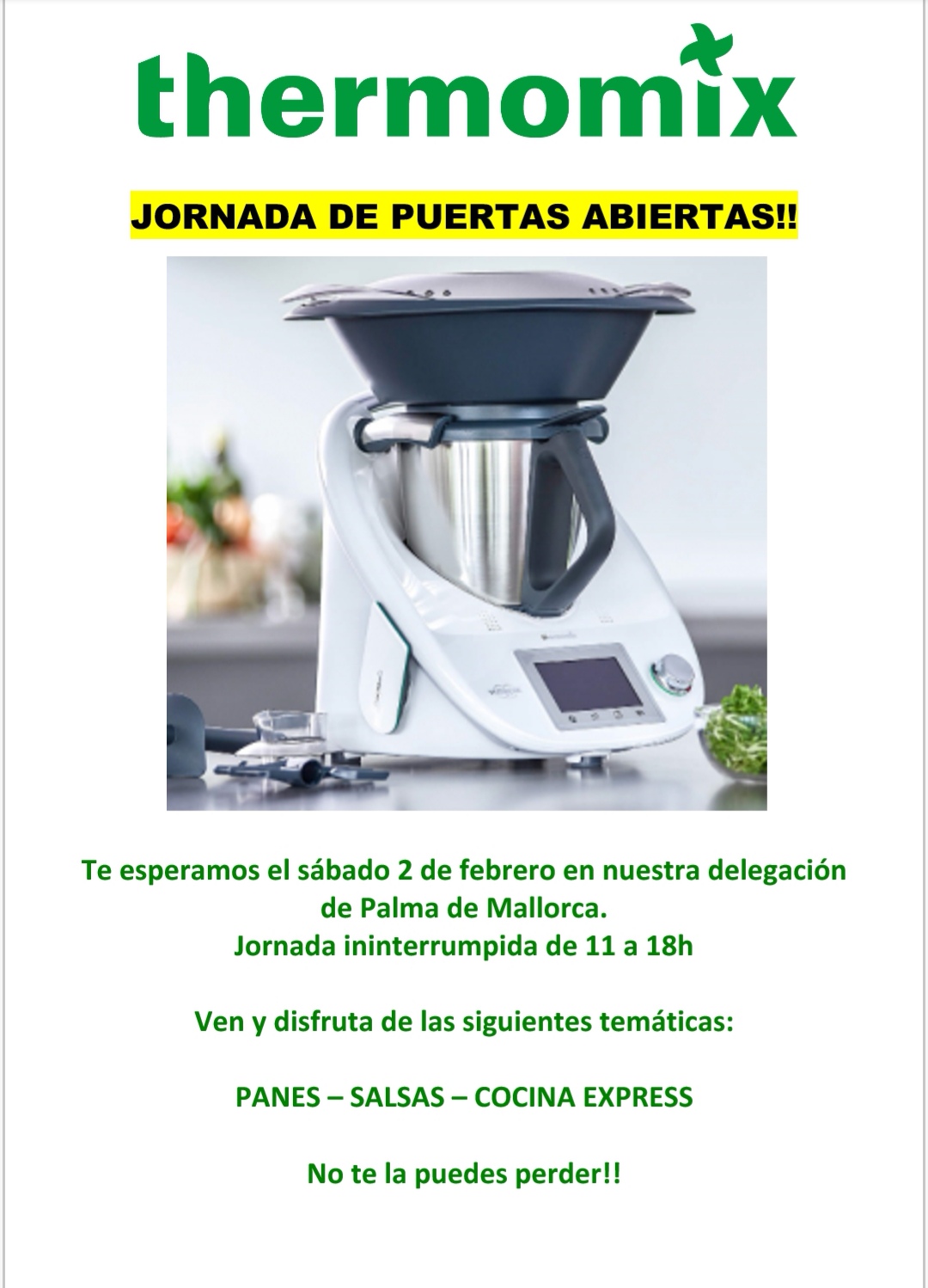 El sábado 2 de Febrero en la delegación de Palma c/ Miquel Capllonch 33 bjs, tendremos una jornada de puertas abiertas desde las 11 de la mañana hasta las 18 h. Podrás ver en directo la preparación de panes, salsas y cocina expres. Hasta las recetas más complicadas se convierten en fáciles preparaciones.