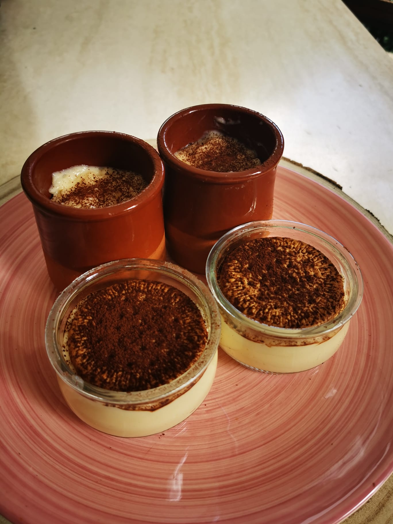 Nosotros las espolvoreamos con chocolate en polvo.