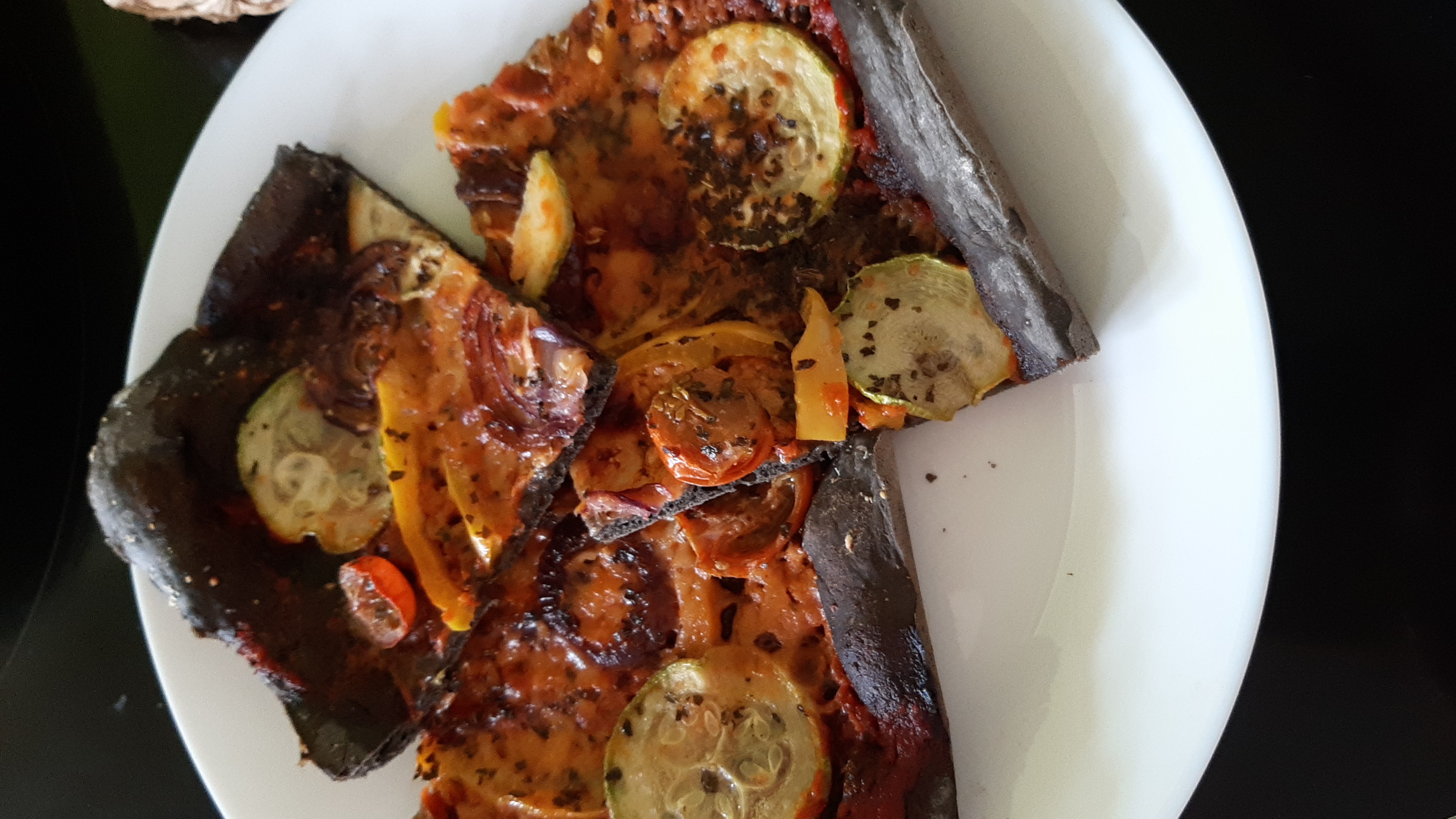 Hoy hemos comido una deliciosa pizza de masa color negra, si si, con tinta de calamar.