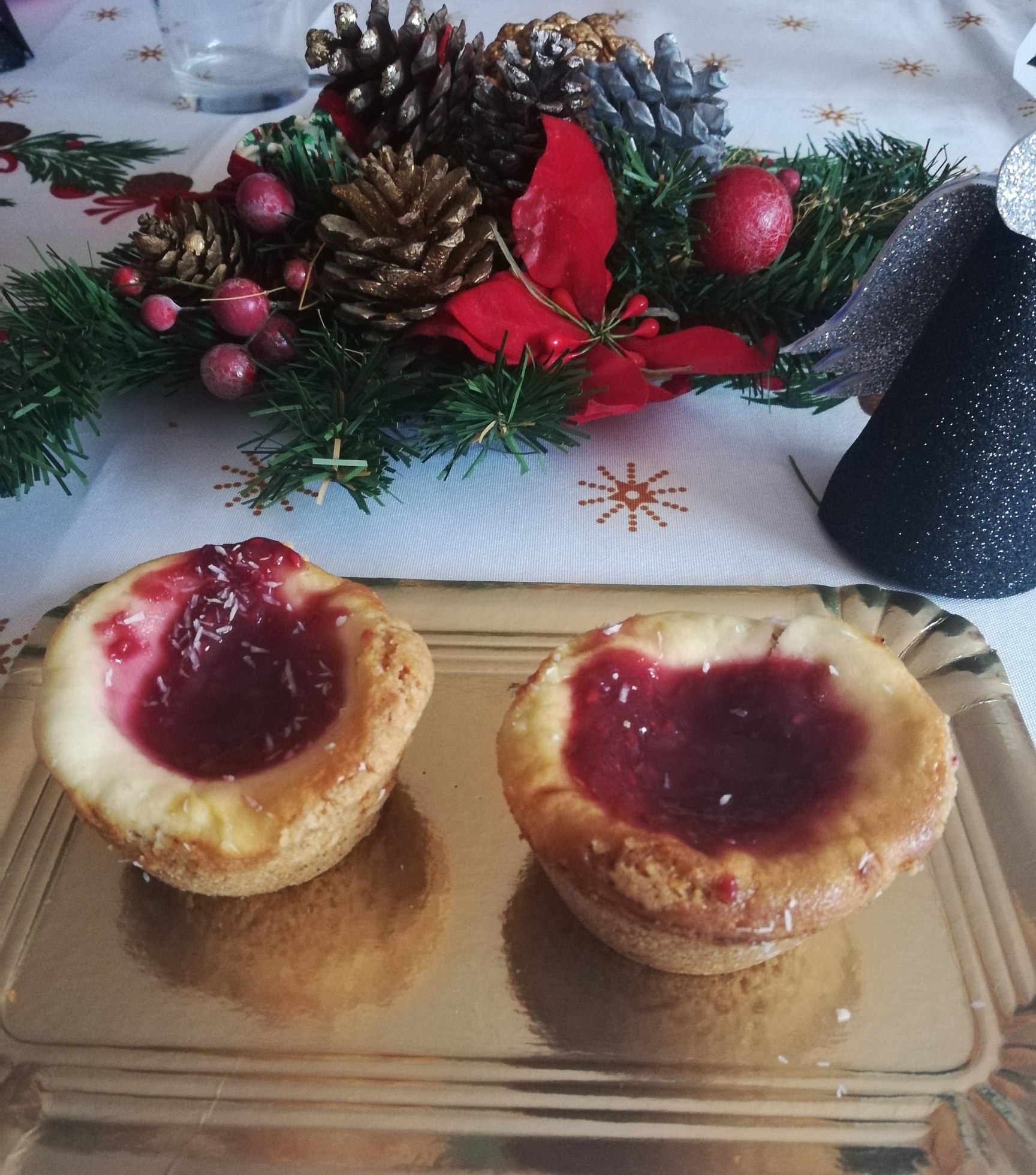 Hornee durante 20 minutos a 180ºC. Retire del horno, deje enfriar (aprox. 1 hora) y desmolde despegando los bordes con un cuchillo o espátula fina. Ponga encima de cada cheesecake una cucharadita de mermelada de frambuesa y sirva.