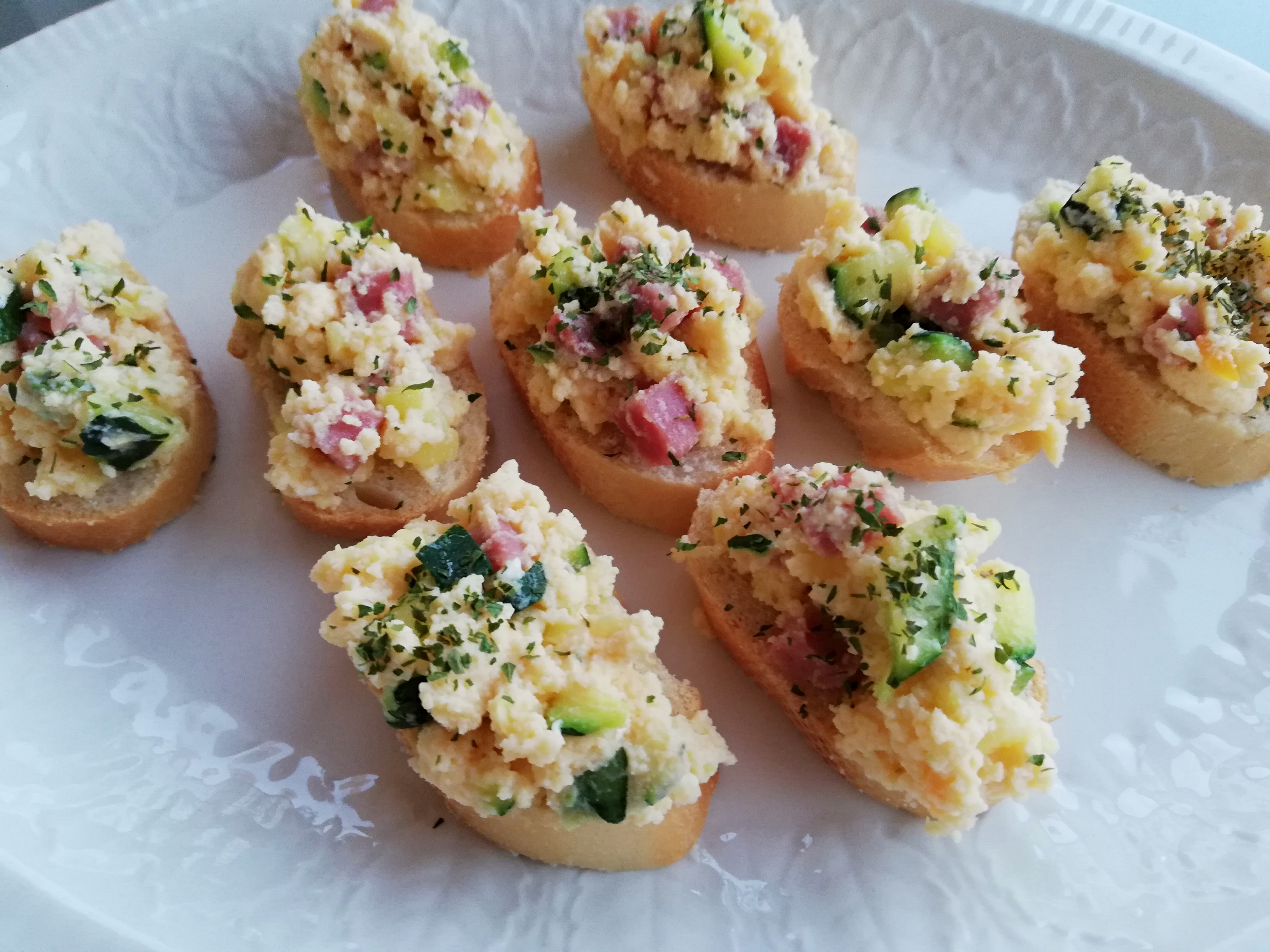 Tienes la receta de forma guiada Huevos con calabacín, jamón y queso