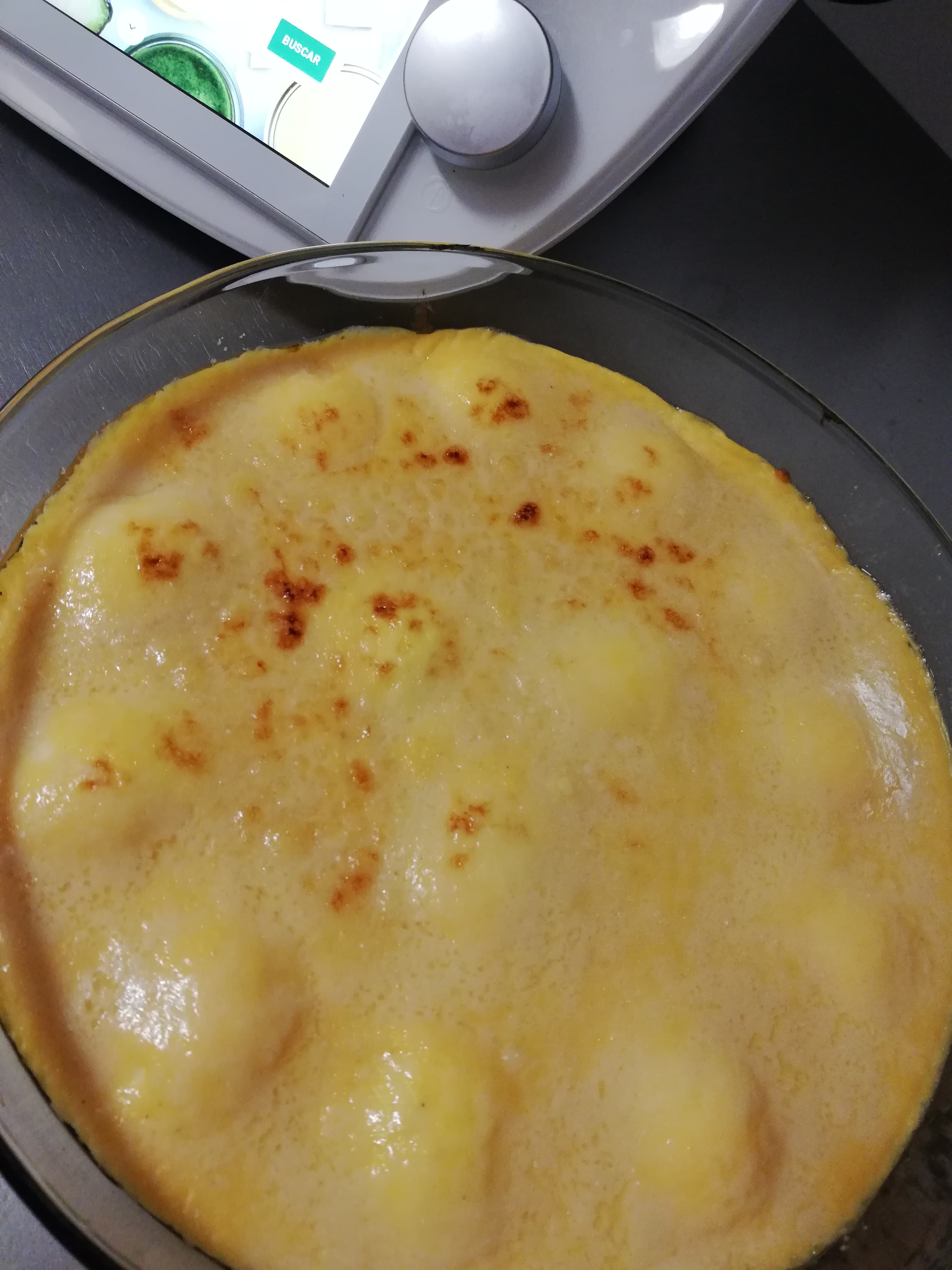 Ponga en el vaso las yemas, el atún y el tomate frito y triture 6 seg/vel 6. Vierta la mezcla en una fuente de horno de 20x30 cm y alísela con la espátula. Ponga encima las claras con la parte lisa hacia arriba y presione ligeramente.