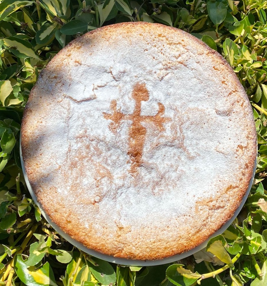 - Hornea durante 20 minutos a 180°C. Deja enfriar aprox. 40 minutos y desmolda. Decora la tarta poniendo la silueta de una cruz de Santiago en el centro y espolvorea toda la superficie con el azúcar glas. Corta en porciones y sirve.
