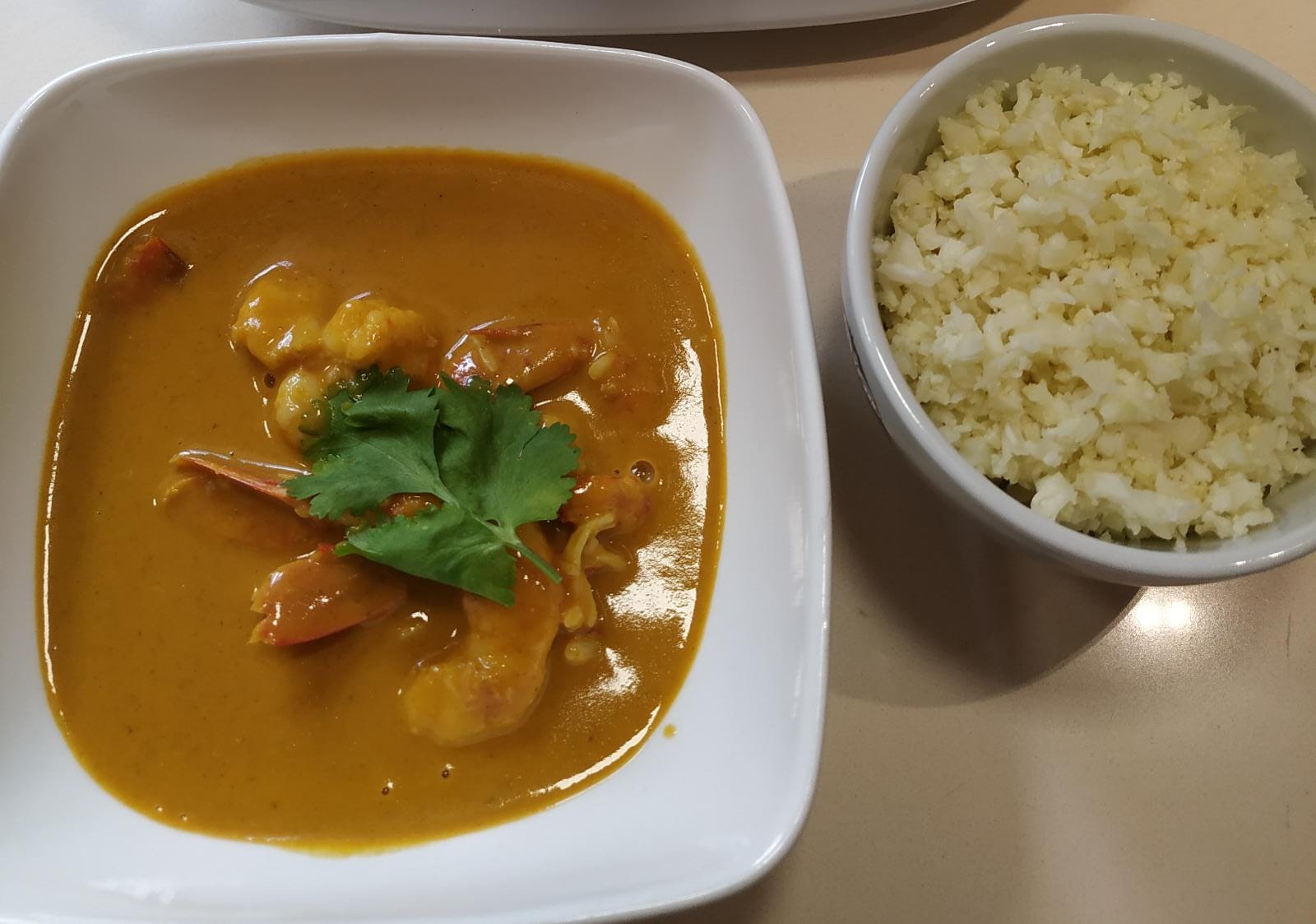 Curry de gambas con arroz de coliflor