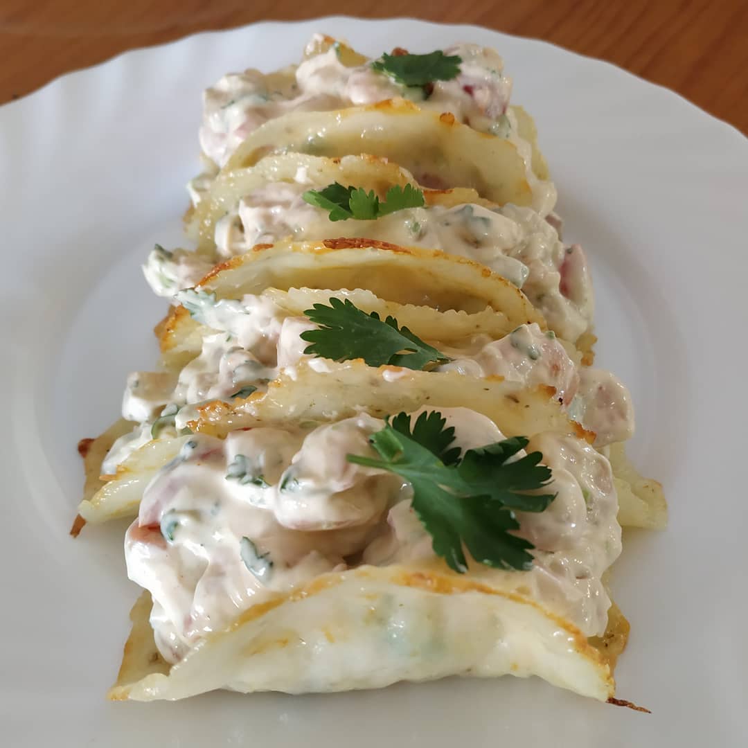 Unos ricos tacos que podrían rellenarse con cualquier cosa. Sustituir la masa clásica por queso es un verdadero acierto, de verdad!